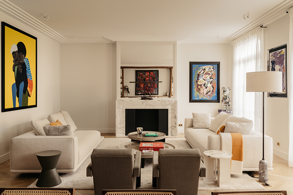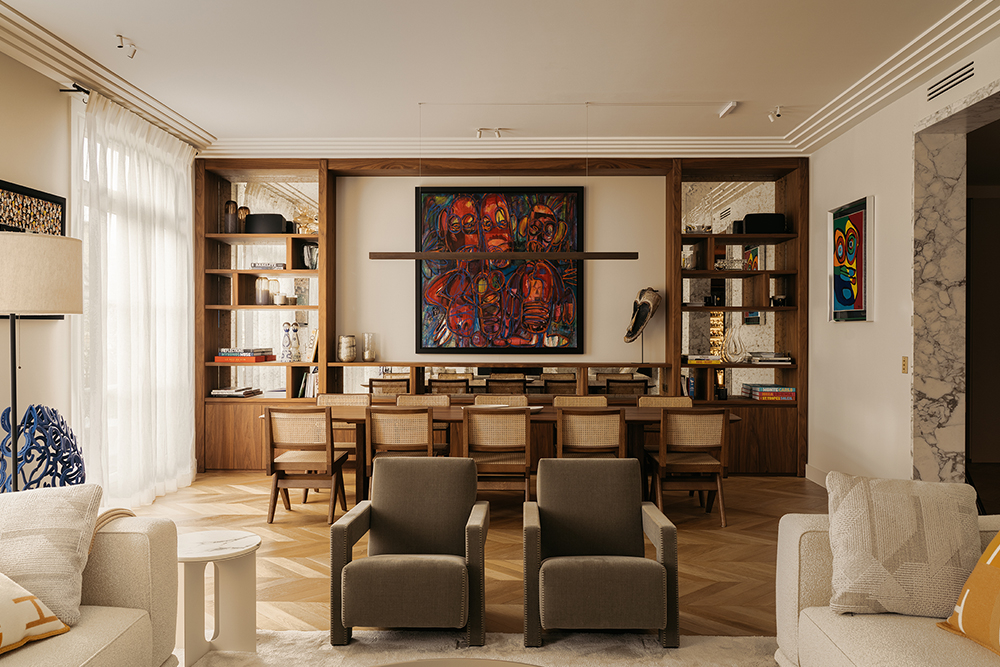 Une rénovation remarquable d'un appartement haussmannien où les lignes simples et épurées se dévoilent avec élégance. Une sélection de mobilier, soigneusement orchestrée avec les équipes Silvera, reflète parfaitement cette esthétique, avec des pièces modernes et intemporelles aux matériaux nobles et raffiné.