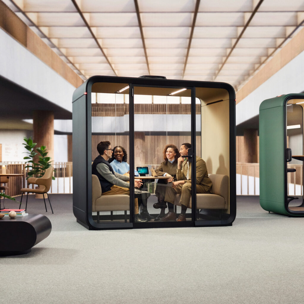 Une cabine de réunion pouvant accueillir jusqu’à 4 personnes, conçue pour les réunions en personne et le travail hybride.