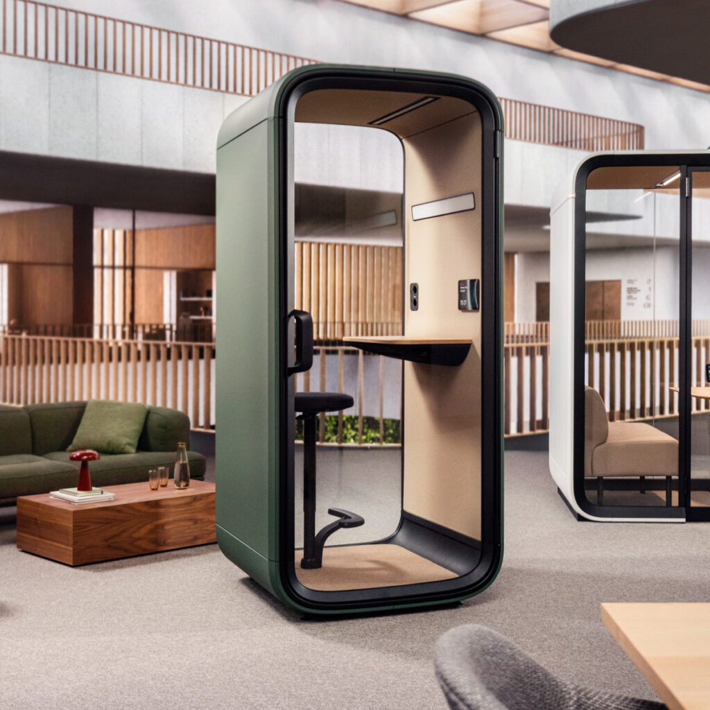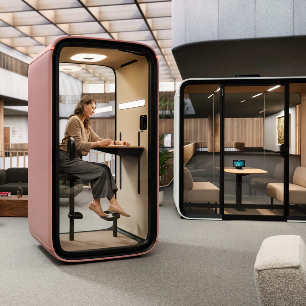 Une cabine intelligente doit combiner la confidentialité avec une acoustique et une ventilation exceptionnelles, des éléments de design chaleureux et des technologies avancées pour faciliter le travail à l’intérieur comme à l’extérieur de la cabine.