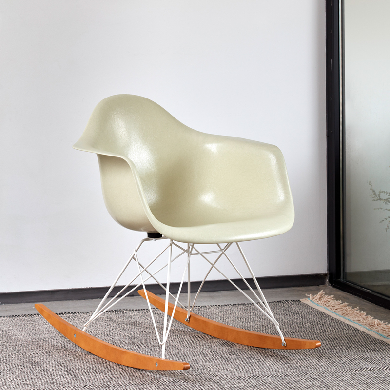With Eames Fiberglass RAR, Vitra reissues Charles and Ray Eames' iconic armchair in several of the original colours. The Eames Armchair, published by Vitra, has been constantly improved and adapted throughout its long production history. Launched on the market in 1950, the Eames Fiberglass was the first plastic chair to be mass-produced. It also marked the introduction of the multifunctional chair, whose shell can be combined with a variety of bases - a revolutionary idea at the time that has since spread far and wide. The Eames Fiberglass RAR armchair is the result of a new Vitra manufacturing process that allows the seat shell to be produced in its original colours and in its first material produced. The shells of the Eames Fiberglass RAR Vitra chair stand out for the characteristic irregular surface of the fibreglass, which appears almost like a natural material thanks to its clearly visible fibres. Vitra Fiberglass seats form a vast family that offers countless variations suitable for almost any use.