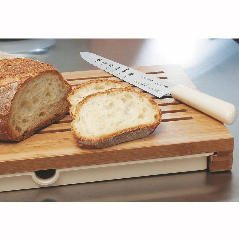 Une nouveauté éditée par la marque italienne Alessi et signée par le duo de designers Anna & Gian Franco Gasparini. La planche Sbriciola va surement devenir votre incontournable accessoire de cuisine. On aime sa planche en bambou pour découper le pain et son large tiroir pour récupérer les miettes. Très pratique, le tiroir de Sbriciola est divisé en deux compartiments : un destiné à ranger le couteau à pain et protégé pour ne pas recueillir les miettes, et un autre pour les récupérer. Les larges fentes longitudinales, le bois de bambou, la finition satinée du tiroir... autant de caractéristiques de Sbriciola qui revisitent parfaitement la planche à pain. La fonctionnalité de cet accessoire de cuisine est traduite dans les moindres détails y compris avec les pieds en caoutchouc antidérapant qui permettent d'assurer la stabilité au moment de la découpe.