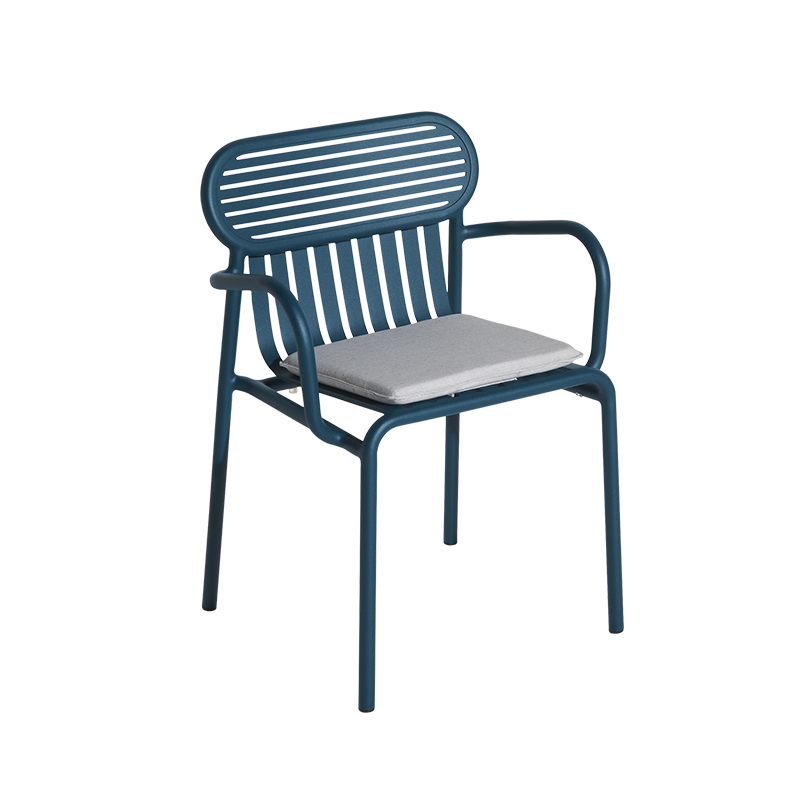 Le coussin Week-End est spécialement conçu pour s'adapter parfaitement à la chaise, au petit fauteuil, au banc et au tabouret haut Week-End. Pratique avec son tissu hydrofuge et anti-UV, le coussin Week-end se fixe au siège avec deux bandes velcro et ajoute une dose de confort supplémentaire pour les longs repas sur la terrasse ou dans le jardin. Il est décliné en trois couleurs sobres qui s'associent avec toutes les couleurs de la gamme Week-end.