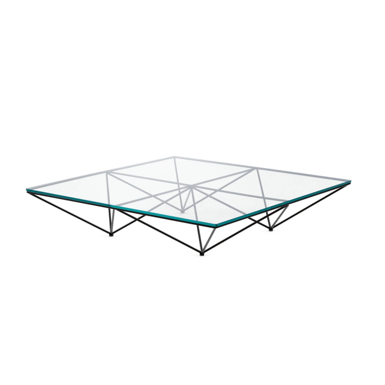 B&B Italia, cette table reste un exemple incontournable de mobilier contemporain et élégant. Le design de la table repose sur une base géométrique distinctive, évoquant des pyramides renversées, une structure géodésique qui confère à l'ensemble une légèreté surprenante malgré sa forte présence visuelle. Le plateau en