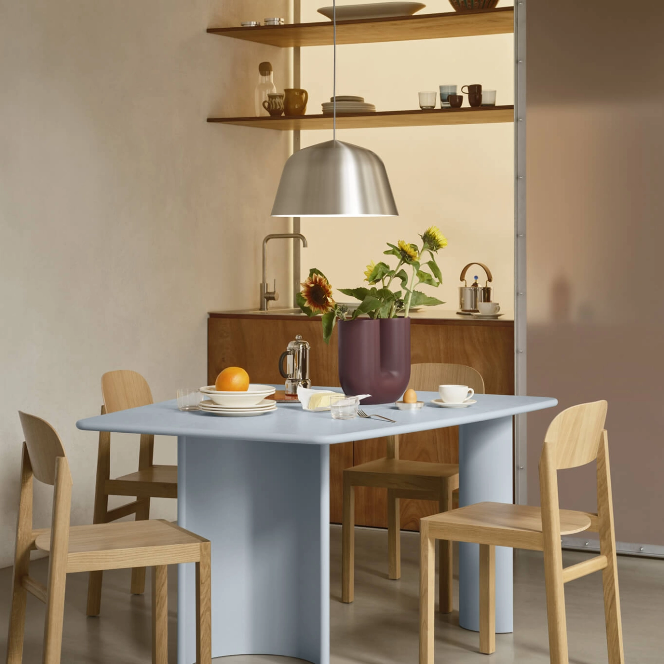 Créée par Taf Studio, Ambit est une suspension aux lignes épurées et séduisantes, caractérisée par des proportions généreuses et un design résolument intemporel. Pensée pour mettre en valeur la simplicité de la forme, elle se distingue par sa silhouette douce et équilibrée, qui apporte une présence élégante sans jamais dominer l’espace. Éditée par Muuto, cette suspension puise son inspiration dans la tradition ancestrale des braseros. Chaque abat-jour est façonné selon un savoir-faire exigeant : l’aluminium est tourné à la presse, poli avec soin, puis peint à la main. Ce processus artisanal confère à Ambit une finition raffinée et une qualité durable, tout en révélant la profondeur et la subtilité de ses teintes. Véritable mariage entre tradition et modernité, Ambit incarne l’essence du design scandinave : fonctionnalité, sobriété et attention portée aux détails. Son intérieur blanc optimise la diffusion de la lumière, créant un éclairage doux et chaleureux, idéal pour instaurer une atmosphère conviviale. Disponible en plusieurs couleurs et différentes tailles, Ambit s’adapte facilement à tous les styles d’intérieur. Installée au-dessus d’une table de salle à manger, alignée au-dessus d’un îlot de cuisine ou placée dans une entrée, seule ou en composition, elle structure l’espace avec élégance et simplicité.