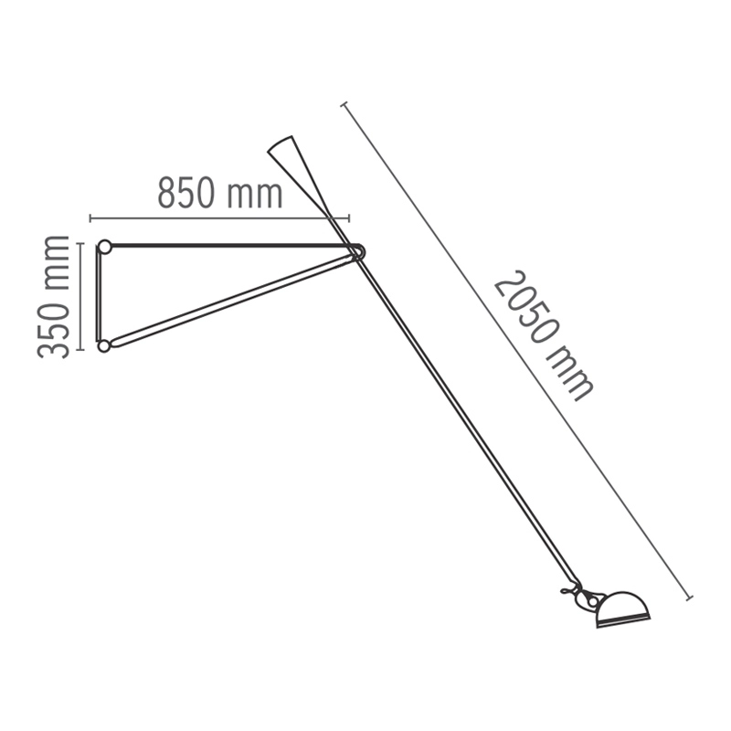 bras lampe l 205cm, tête lampe diam 16cm, fixation l 85cm x h 35cm