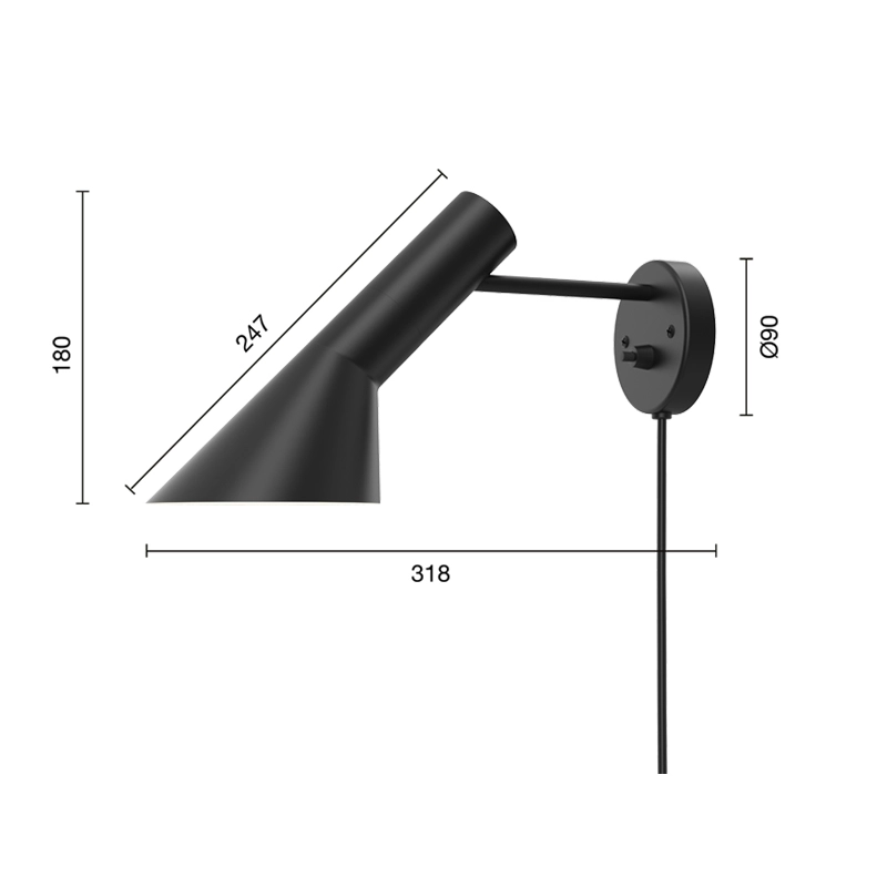 Dessinés par Arne Jacobsen et édités par Louis Poulsen en 1960 pour le SAS Royal Hôtel à Copenhague (Radisson Blu), les luminaires AJ faisaient partie, à l’origine, du concept de design complet créé pour l'Hôtel. Arne Jacobsen a non seulement dessiné les plans de l’hôtel, mais aussi imaginé dans les moindres détails la décoration intérieures de ce dernier. Bon nombre de produits dessinés à cette occasion sont aujourd'hui des icones du design, comme les fauteuils Egg et Swan. L’applique AJ se caractérise par la forme asymétrique particulière de son abat-jour orientable. Elle est constituée d’une base ronde, d’un pied tubulaire et d’un diffuseur conique de forme tronquée. L’intérieur de l’abat-jour est peint en blanc afin de rendre la lumière plus confortable. Le diffuseur orientable et l’intérieur de l’applique AJ Wall est peint en blanc, afin de rendre la lumière plus douce et confortable. Cette applique associe un design pur et intemporel à d’excellentes qualités d’éclairage. Aujourd’hui perçue comme une icône du design scandinave, elle est synonyme d’élégance et de légèreté. L’applique AJ émet une lumière asymétrique, directe et puissante, dirigée vers le bas. Les lampes AJ ont obtenu également une renommée mondiale. Les luminaires AJ de Louis Poulsen restent au fils du temps des classiques modernes dans le domaine des luminaires design.