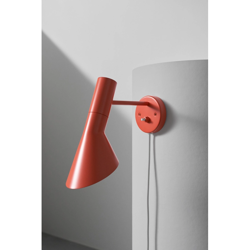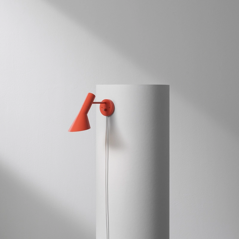 Dessinés par Arne Jacobsen et édités par Louis Poulsen en 1960 pour le SAS Royal Hôtel à Copenhague (Radisson Blu), les luminaires AJ faisaient partie, à l’origine, du concept de design complet créé pour l'Hôtel. Arne Jacobsen a non seulement dessiné les plans de l’hôtel, mais aussi imaginé dans les moindres détails la décoration intérieures de ce dernier. Bon nombre de produits dessinés à cette occasion sont aujourd'hui des icones du design, comme les fauteuils Egg et Swan. L’applique AJ se caractérise par la forme asymétrique particulière de son abat-jour orientable. Elle est constituée d’une base ronde, d’un pied tubulaire et d’un diffuseur conique de forme tronquée. L’intérieur de l’abat-jour est peint en blanc afin de rendre la lumière plus confortable. Le diffuseur orientable et l’intérieur de l’applique AJ Wall est peint en blanc, afin de rendre la lumière plus douce et confortable. Cette applique associe un design pur et intemporel à d’excellentes qualités d’éclairage. Aujourd’hui perçue comme une icône du design scandinave, elle est synonyme d’élégance et de légèreté. L’applique AJ émet une lumière asymétrique, directe et puissante, dirigée vers le bas. Les lampes AJ ont obtenu également une renommée mondiale. Les luminaires AJ de Louis Poulsen restent au fils du temps des classiques modernes dans le domaine des luminaires design.