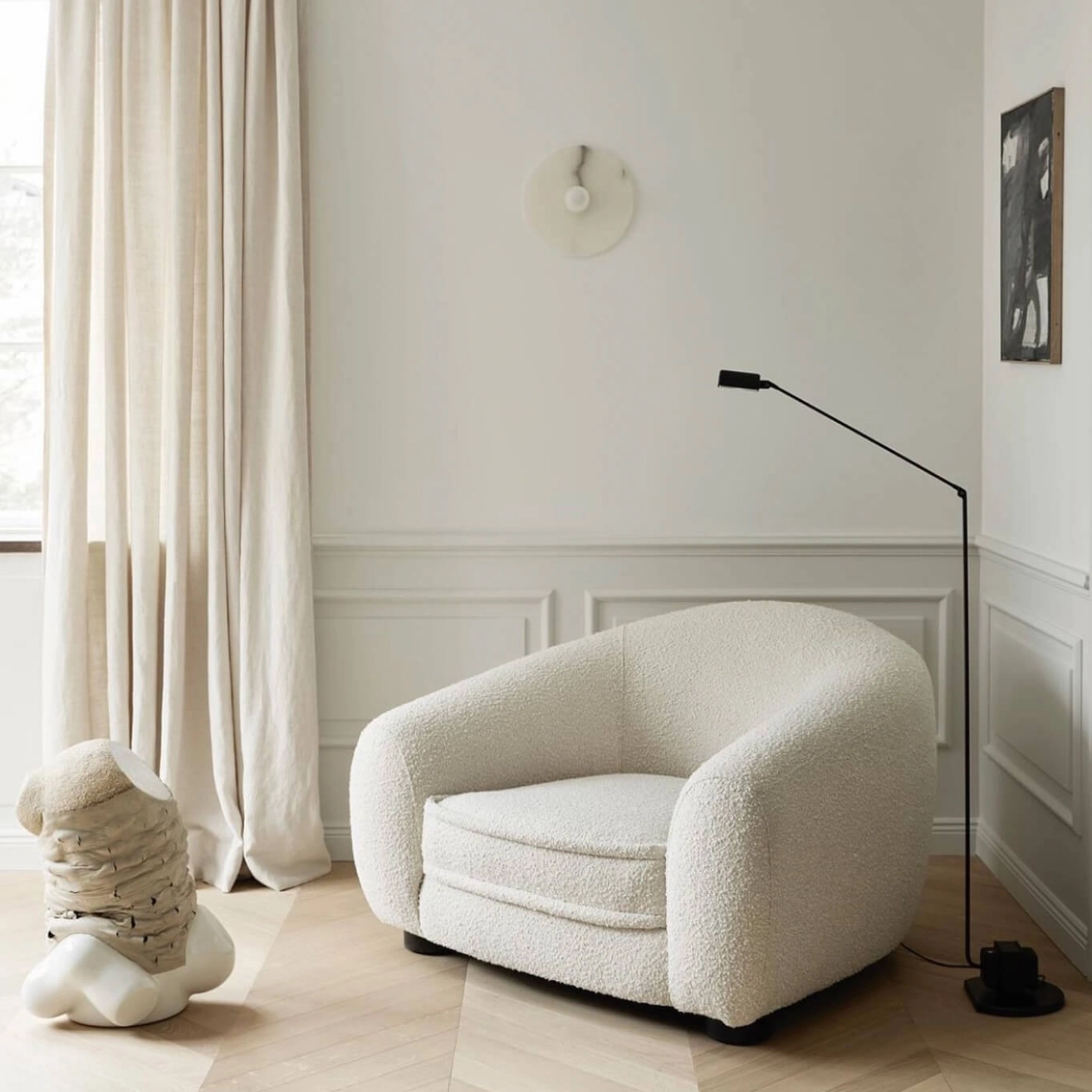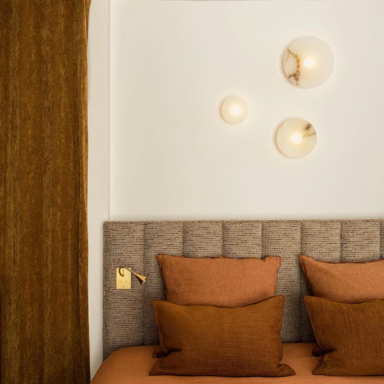 L’applique Alba Simple Wall XXL Alabaster est une création du studio espagnol Contain, fondé à Majorque par les designers Mauricio Obarrio et Juan Peralta. Fidèle à l’esthétique minimaliste et architecturale de la marque, cette pièce met à l’honneur l’albâtre, une pierre naturelle reconnue pour sa translucidité et son élégance intemporelle. L’Alba Simple Wall XXL se distingue ainsi par son travail subtil de la matière, où chaque détail révèle la singularité de la pierre. Chaque applique est unique : le client peut choisir une version aux veinures apparentes, révélant toute la richesse et le caractère de la matière, ou préférer une finition blanc pur, plus homogène et épurée, pour un rendu résolument contemporain. Grâce à la diffusion douce et homogène qu’offre l’albâtre, la lumière devient chaleureuse et enveloppante, créant une atmosphère raffinée aussi bien dans un intérieur résidentiel que dans un espace hôtelier ou contract. Véritable pièce sculpturale, l’Alba Simple Wall XXL incarne la philosophie de Contain : associer matières naturelles, lignes essentielles et fabrication soignée pour proposer un luminaire à la fois fonctionnel et profondément esthétique.