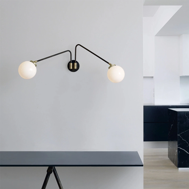 La collection Array éditée par la maison de luminaires CTO Lighting, trouve ses origines dans l'Italie des années 60. Elle propose un design sculptural à mi-chemin entre les styles contemporain et rétro, incarnés par des bras en métal ciré à la main, terminés par des diffuseurs en verre opalin soufflé. La forme distincte des luminaires Array habille les espaces avec une grande modernité, en leur apportant un luxe discret, alors que les sphères de verre mobiles diffusent une merveilleuse lueur, notamment en fin de journée. Simple mais élégante, la collection Array est disponible sous forme de suspension, de lampadaire, ou d'applique.