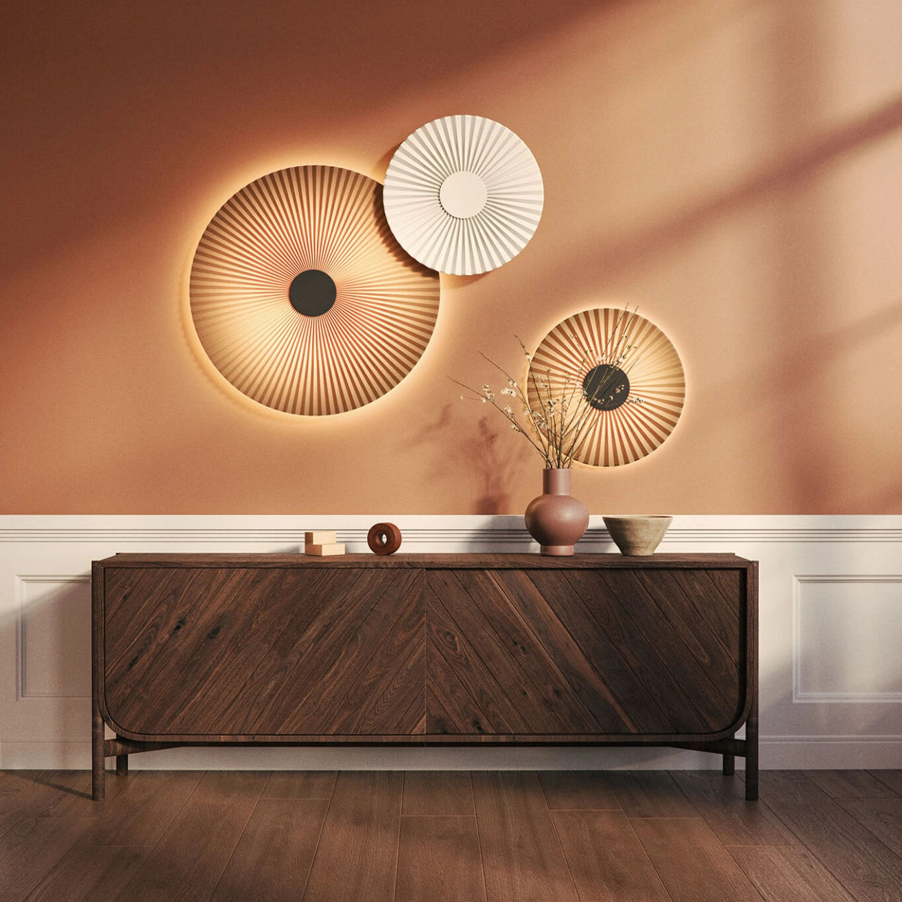 Avec Carmen, le studio PaulinePlusLuis a dessiné pour Hartô une collection de luminaires au graphisme captivant. Comme les suspensions de la série, l’applique Carmen se distingue par sa corolle plissée en textile et son cœur en métal laqué mat d’où jaillit la lumière. Dans toutes les pièces de la maison, seule ou en composition de plusieurs éléments, l’applique Carmen apporte une lumière chaleureuse et une ambiance élégante.