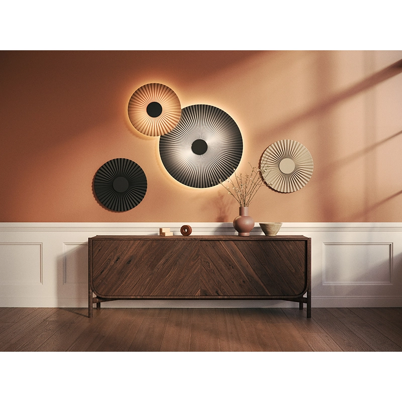 Avec Carmen, le studio PaulinePlusLuis a dessiné pour Hartô une collection de luminaires au graphisme captivant. Comme les suspensions de la série, l’applique Carmen se distingue par sa corolle plissée en textile et son cœur en métal laqué mat d’où jaillit la lumière. Dans toutes les pièces de la maison, seule ou en composition de plusieurs éléments, l’applique Carmen apporte une lumière chaleureuse et une ambiance élégante.  Fabriquée 100% en France, l’applique Carmen est équipée d’une source lumineuse en ruban LED, et offre 2 possibilités d’installation : directement branchée sur une sortie murale ou branchée sur une prise, grâce au cordon avec interrupteur fourni.