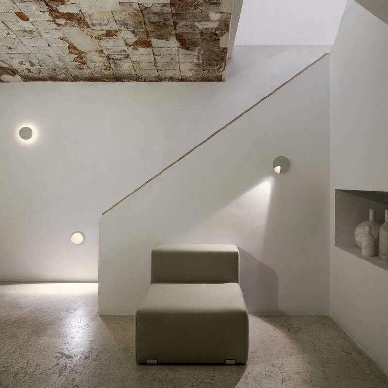 Dots produit des effets lumineux graphiques grâce à un faisceau conique qui couvre le mur de compositions artistiques et géométriques. L’applique est orientable à 360 degrés, permettant d'orienter la lumière selon les besoins. L’applique Dots souligne parfaitement le caractère atypique d’un design d’intérieur, surtout lorsqu’elle est utilisée en combinaison.
