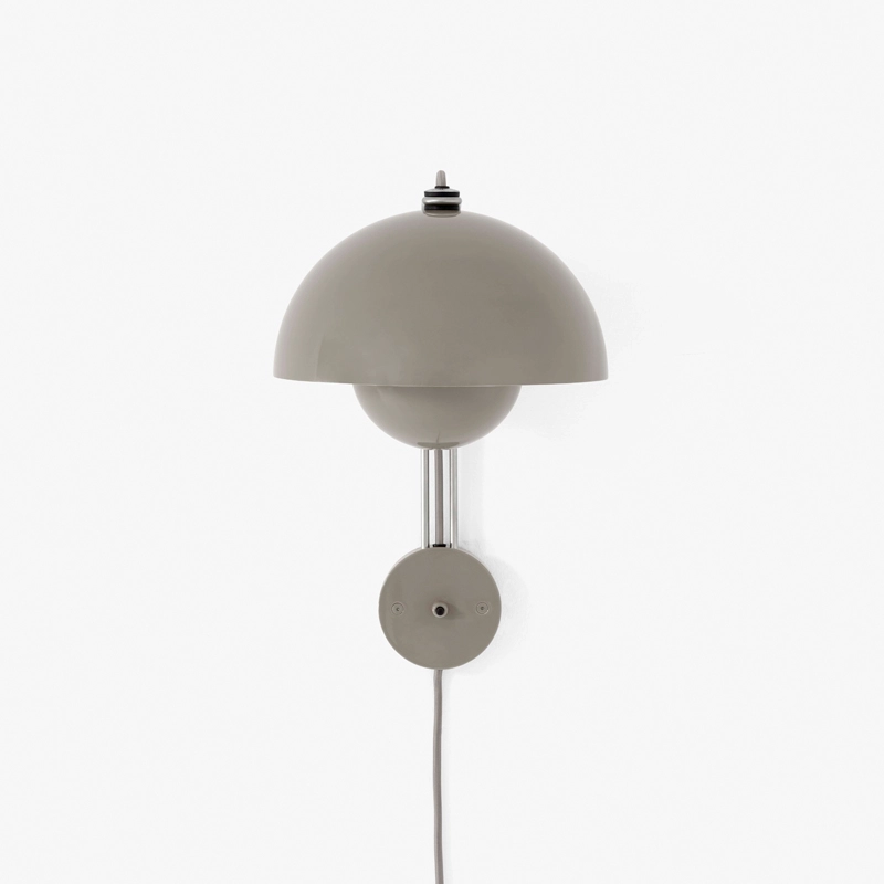 En 1968 la révolte des étudiants à Paris, à Rome et aux Etats-Unis renversaient les vieilles valeurs trop sévères et engageaient la génération « Flower-Power » faite de paix, d'amour et d'harmonie. La même année, Stanley Kubrick imaginait le futur, l'an 2001, mettant en vedette la chaise Panton devenue un classique du design, et l'homme était sur le point de poser le pied sur la lune. Dans le monde du design, une suspension colorée et ludique fleurissait dans les restaurants, les expositions et bientôt dans nos maisons. La lampe FlowerPot, avec ses deux demi sphères face à face, présente un design intemporel et de qualité, édité par & Tradition. L'applique Flowerpot VP8 peut être installée sur une prise électrique, grâce à son câble fourni, mais peut être aussi raccordée à une sortie électrique au mur.