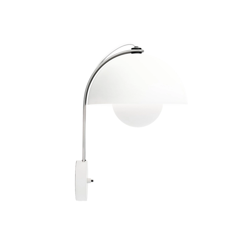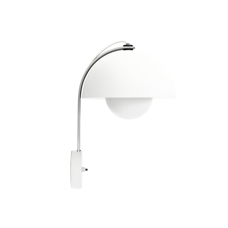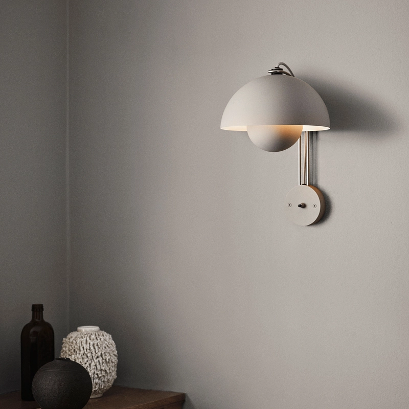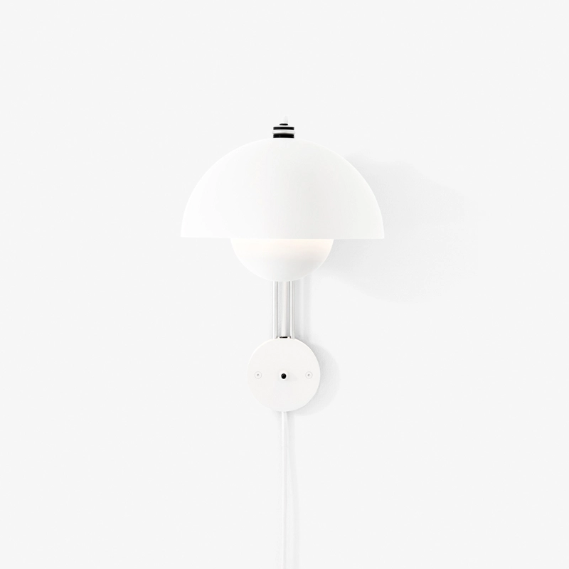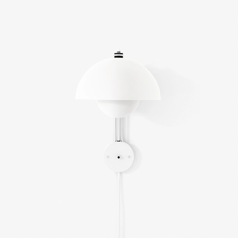 En 1968 la révolte des étudiants à Paris, à Rome et aux Etats-Unis renversaient les vieilles valeurs trop sévères et engageaient la génération « Flower-Power » faite de paix, d'amour et d'harmonie. La même année, Stanley Kubrick imaginait le futur, l'an 2001, mettant en vedette la chaise Panton devenue un classique du design, et l'homme était sur le point de poser le pied sur la lune. Dans le monde du design, une suspension colorée et ludique fleurissait dans les restaurants, les expositions et bientôt dans nos maisons. La lampe FlowerPot, avec ses deux demi sphères face à face, présente un design intemporel et de qualité, édité par & Tradition. L'applique Flowerpot VP8 peut être installée sur une prise électrique, grâce à son câble fourni, mais peut être aussi raccordée à une sortie électrique au mur.