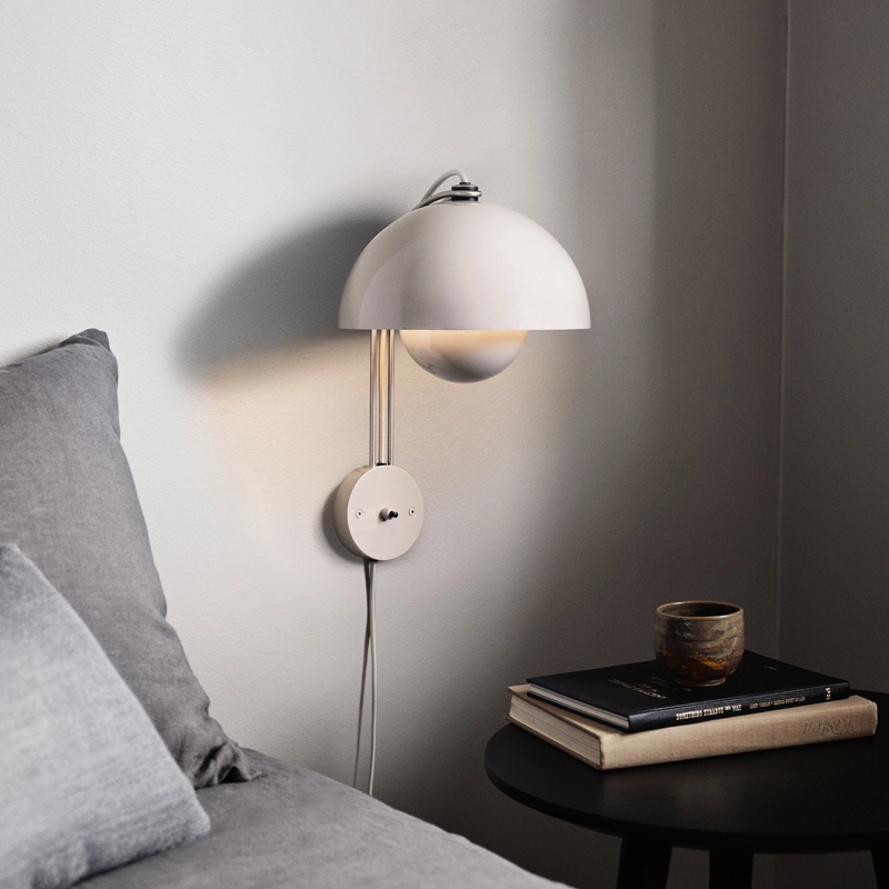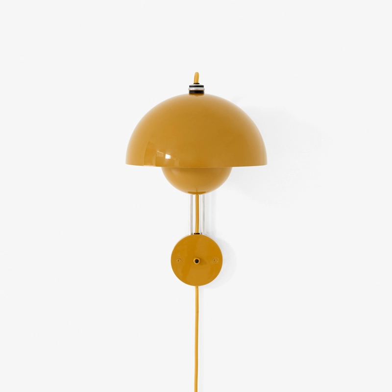 En 1968 la révolte des étudiants à Paris, à Rome et aux Etats-Unis renversaient les vieilles valeurs trop sévères et engageaient la génération « Flower-Power » faite de paix, d'amour et d'harmonie. La même année, Stanley Kubrick imaginait le futur, l'an 2001, mettant en vedette la chaise Panton devenue un classique du design, et l'homme était sur le point de poser le pied sur la lune. Dans le monde du design, une suspension colorée et ludique fleurissait dans les restaurants, les expositions et bientôt dans nos maisons. La lampe FlowerPot, avec ses deux demi sphères face à face, présente un design intemporel et de qualité, édité par & Tradition. L'applique Flowerpot VP8 peut être installée sur une prise électrique, grâce à son câble fourni, mais peut être aussi raccordée à une sortie électrique au mur.