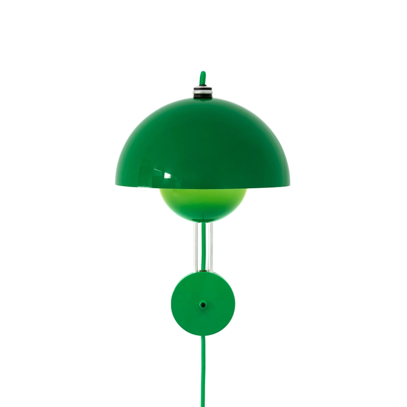 En 1968 la révolte des étudiants à Paris, à Rome et aux Etats-Unis renversaient les vieilles valeurs trop sévères et engageaient la génération « Flower-Power » faite de paix, d'amour et d'harmonie. La même année, Stanley Kubrick imaginait le futur, l'an 2001, mettant en vedette la chaise Panton devenue un classique du design, et l'homme était sur le point de poser le pied sur la lune. Dans le monde du design, une suspension colorée et ludique fleurissait dans les restaurants, les expositions et bientôt dans nos maisons. La lampe FlowerPot, avec ses deux demi sphères face à face, présente un design intemporel et de qualité, édité par & Tradition. L'applique Flowerpot VP8 peut être installée sur une prise électrique, grâce à son câble fourni, mais peut être aussi raccordée à une sortie électrique au mur.