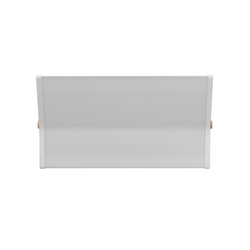 L’applique indirecte G3, aux lignes pures, est un modèle emblématique des créations de Pierre Guariche. Elle diffuse une lumière douce et confortable grâce à sa grille en métal perforé et offre à votre imagination des possibilités multiples d’installation : à l’horizontale ou à la verticale, elle est également inclinable. Pour éclairer une tête de lit, un bureau ou encore un couloir, sa douce lumière s’accorde à toute heure de la journée. Elle existe en trois couleurs – noir, blanc, gris – qui peuvent être associées sur une paroi pour créer un motif graphique unique.