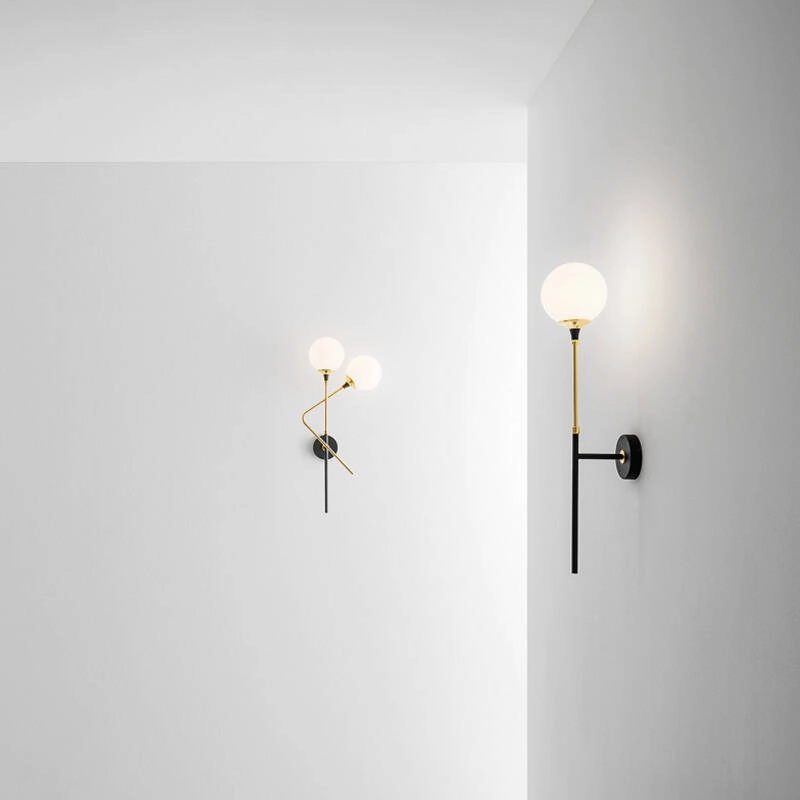 L’applique Galassia double (2 sphères)de Stilnovo est dotée du charme des années 1950 grâce à la combinaison du laiton avec la dorure galvanique de la structure et les sphères en verre soufflé triplex blanc. Editée par Stilnovo, l'applique Galassia double fait partie d'une collection précieuse qui enrichit l'espace d'une touche rétro sophistiquée. Cette applique murale est également disponible en version simple, avec une sphère.