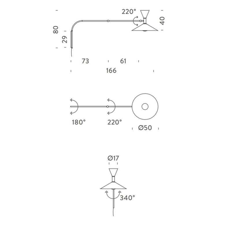 2x70w e27 ø11cm +a60, 230v (ampoules non incluses). applique orientable, double émission, interrupteur sur câble (1,5+1,3m)