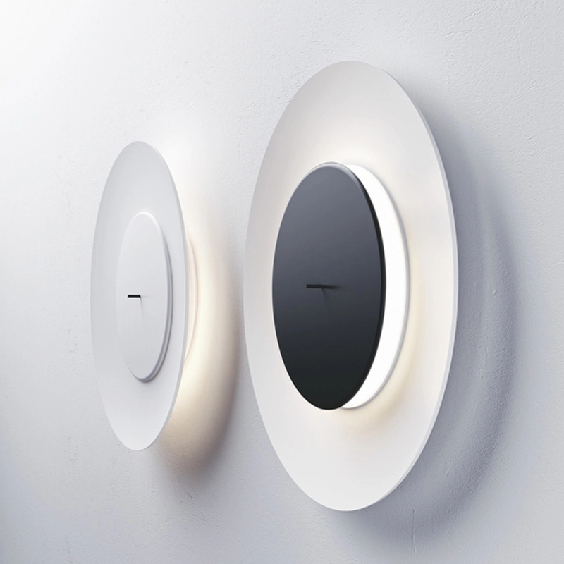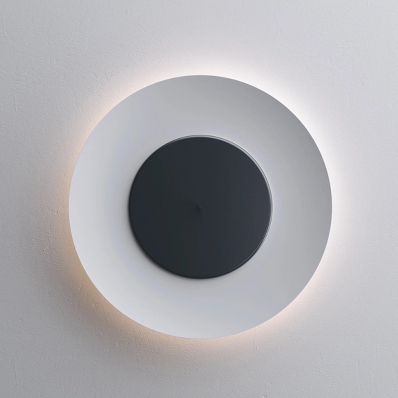Lunaire de Fontana Arte est une applique murale et un plafonnier qui produit un effet lumineux surprenant, rappelant le phénomène produit par les éclipses. Un petit disque frontal contenant la source lumineuse est placé à l'intérieur d'un grand diffuseur concave en aluminium. Deux effets différents sont possibles selon la position du petit disque par rapport au diffuseur : un éclairage vers l'arrière lorsque le disque frontal est fermé, c'est-à-dire poussé vers le mur, ou de l'intérieur du diffuseur lorsque le disque est tiré vers l'avant. Il suffit de tirer ou de pousser la tige à l'avant du disque pour modifier immédiatement l'émission lumineuse en fonction des besoins. Grâce au grand diamètre du diffuseur, Lunaire est la solution d'éclairage parfaite pour les grandes surfaces, qu'elles soient résidentielles ou contractuelles.