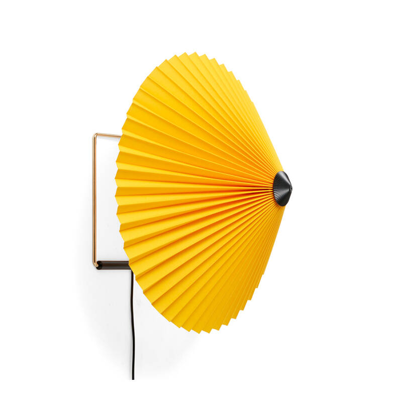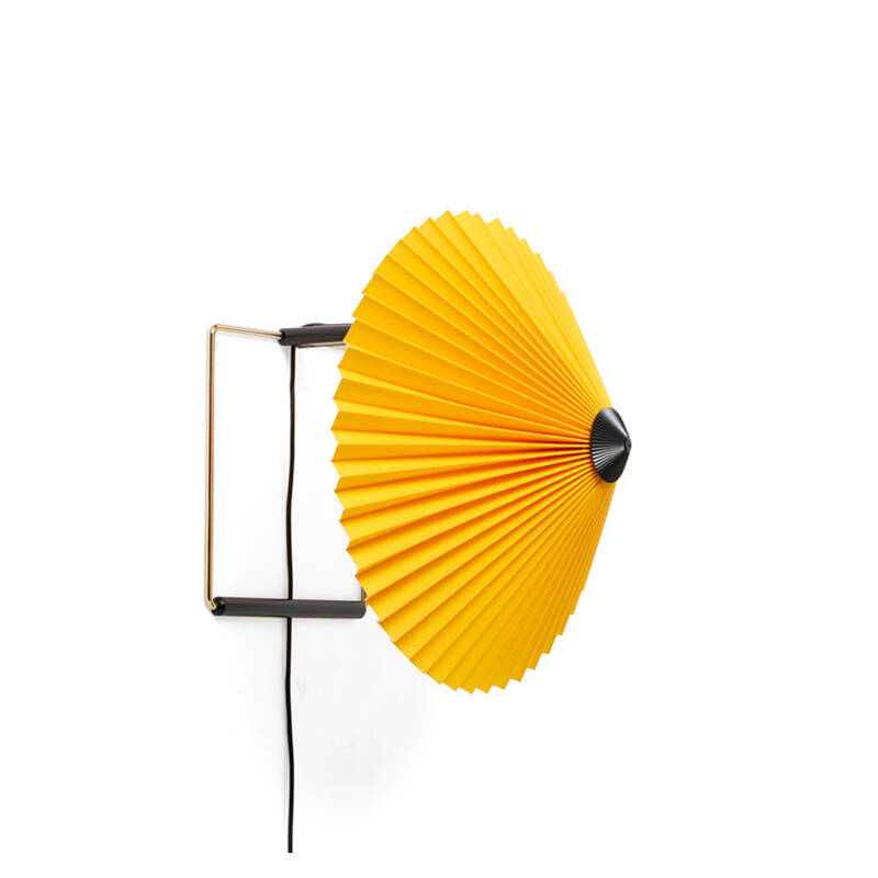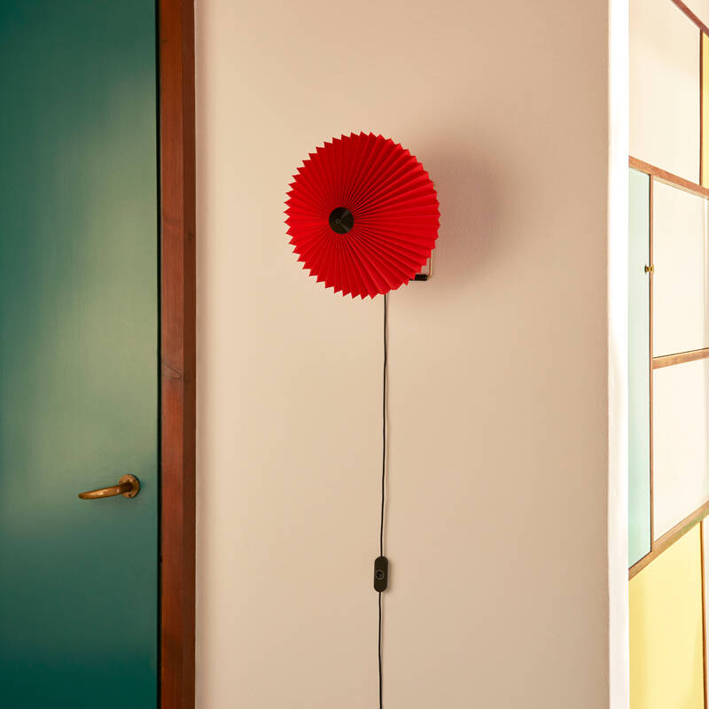 Dessinée par Inga Sempé pour Hay, l’applique Matin offre un design à la fois contemporain et poétique, avec une construction qui allie finesse visuelle et robustesse physique. La tête de la lampe peut être orientée à environ 45 degrés vers le haut ou vers le bas, permettant de créer une lumière d’ambiance ou directe. L’applique Matin se compose d'un cadre en fil d'acier fini en laiton poli et d’un abat-jour en coton plissé disponible en deux diamètres et dans une variété de couleurs vives. La source lumineuse est une LED intégrée, offrant une lumière diffuse. Matin est également équipée d’un variateur digital, permettant d’ajuster la luminosité selon les besoins.