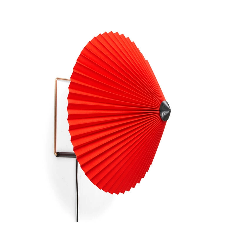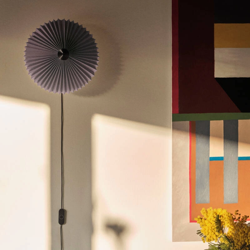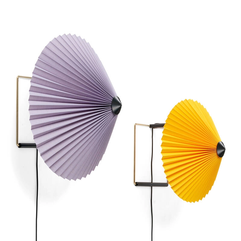 Dessinée par Inga Sempé pour Hay, l’applique Matin offre un design à la fois contemporain et poétique, avec une construction qui allie finesse visuelle et robustesse physique. La tête de la lampe peut être orientée à environ 45 degrés vers le haut ou vers le bas, permettant de créer une lumière d’ambiance ou directe. L’applique Matin se compose d'un cadre en fil d'acier fini en laiton poli et d’un abat-jour en coton plissé disponible en deux diamètres et dans une variété de couleurs vives. La source lumineuse est une LED intégrée, offrant une lumière diffuse. Matin est également équipée d’un variateur digital, permettant d’ajuster la luminosité selon les besoins.