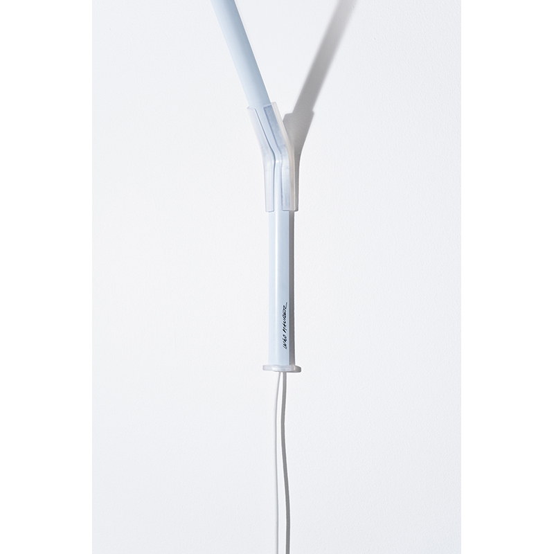L’applique Measure de Josua Roter pour Ingo Maurer transpose un objet du quotidien en un luminaire graphique et fonctionnel. Cette applique murale combine la fonctionnalité d'un mètre ruban avec l'éclairage d'une rampe lumineuse. La lampe est fabriquée à partir de la tôle élastique d'un mètre ruban. L'arrière de la surface concave est pourvu d'une bande lumineuse qui s'étend sur toute sa longueur. L'ensemble est fixé au mur avec un support transparent. La fonctionnalité unique de l'applique Measure Ingo Maurer permet à l'utilisateur de déplacer délicatement la bande vers le haut et vers le bas, transformant ainsi la lumière d'une fine bande lumineuse en une source de lumière indirecte ouverte. Ainsi, il est possible de choisir entre deux ambiances lumineuses.