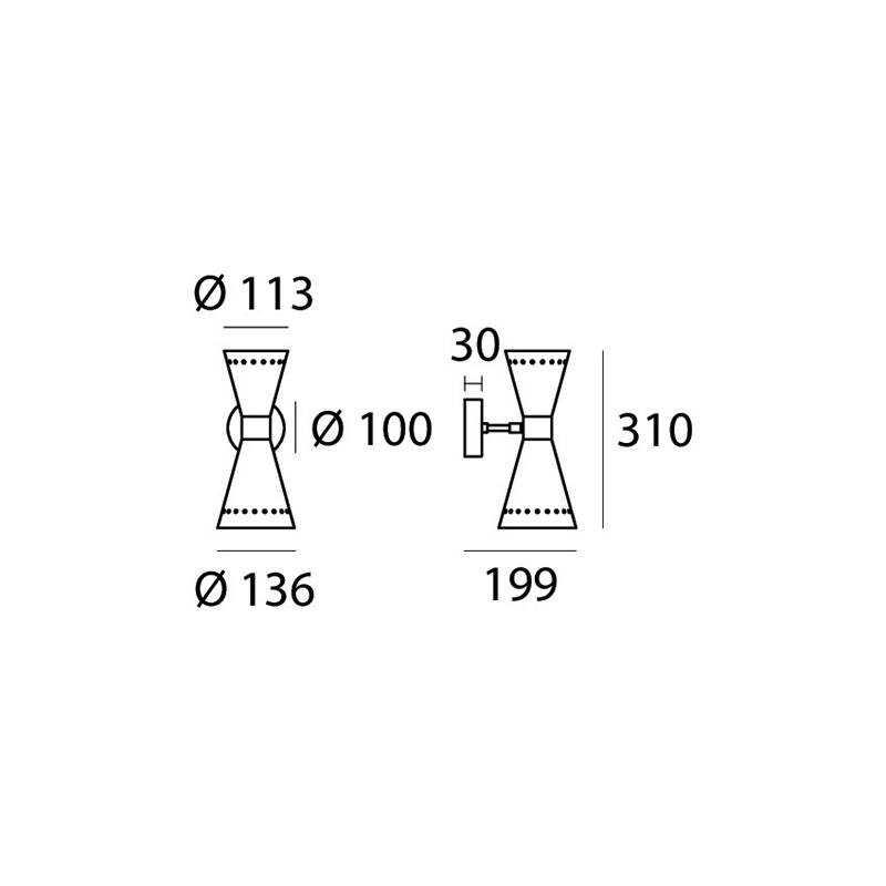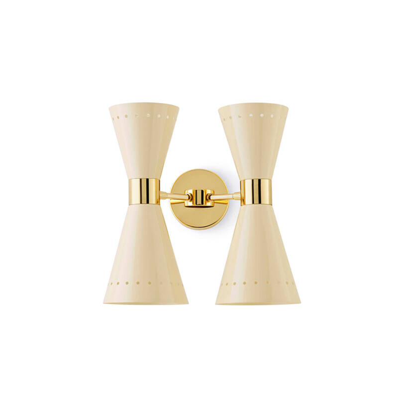 Megafono de Stilnovo est une applique emblématique des années 1950 dotée d'une lumière directe et indirecte. Comme dans la version suspension à trois, six ou huit bras, Megafono associe une précieuse structure en laiton avec dorure galvanique à un double diffuseur conique orientable, couleur ivoire ou noir brillant, éclairant la pièce avec élégance. Parfaite dans toutes les pièces de la maison, l'applique Megafono Stilnovo est aussi disponible en version simple.