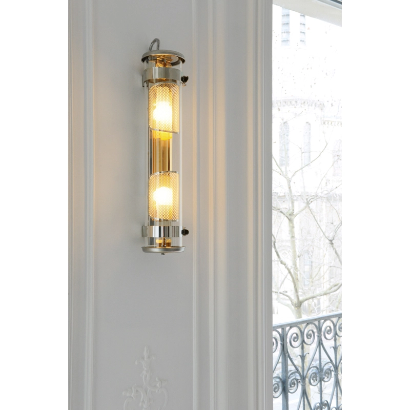 Créé par Sammode Studio, Musset GR est un luminaire incontournable et intemporel qui apportera charme et caractère à vos espaces. En applique, le corps en verre révèle son réflecteur teinté ainsi que ses grilles multiperforées idéales pour créer une ambiance lumineuse douce et tamisée. Suspendu par ses filins en acier, il se dévoile entièrement et apporte un sentiment de légèreté et de finesse. Décliné en cinq teintes, le Musset GR imprégnera votre salle de bain ou votre jardin d’hiver d’une ambiance chaleureuse et intime grâce à ses reflets dorés, cuivrés ou argentés, ou à ses subtiles nuances laiton ou gris-bleutées. Il peut être utilisé aussi bien à l’intérieur qu’à l’extérieur.