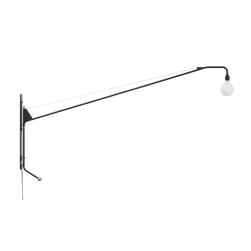 La lampe murale pivotante Potence conçue en 1950 pour la maison « Tropique » est considérée à juste titre comme le chef-d'œuvre puriste de Jean Prouvé. Ce luminaire fascine notamment par l'utilisation parcimonieuse des matériaux et par ses formes minimalistes. Produit par Vitra, Potence est composé d'un tube rond avec fixation murale, laqué noir et est équipé d'un variateur d'intensité.