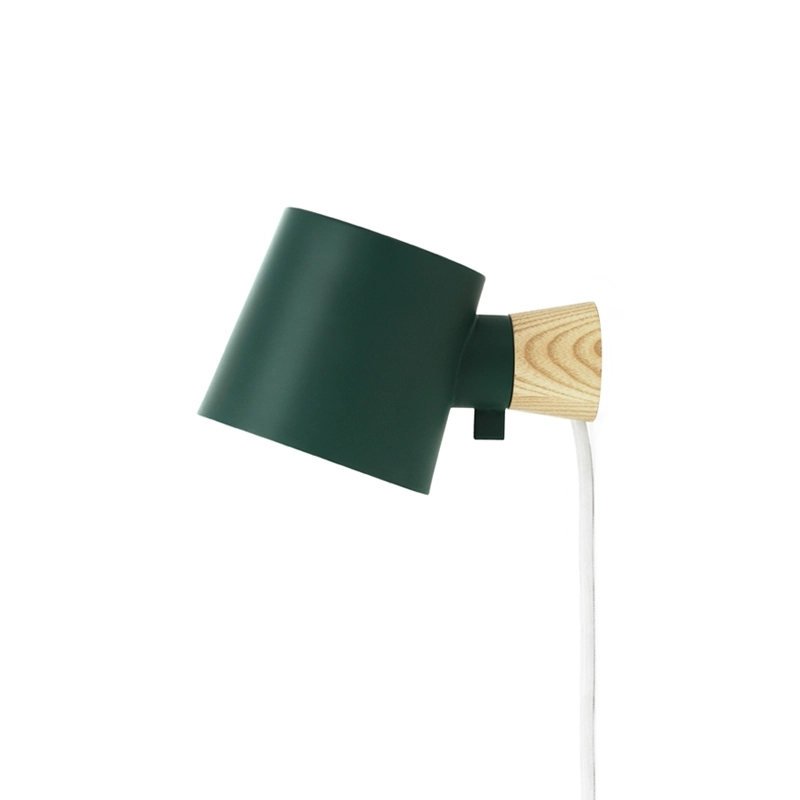 applique Rise. Marianne Andersen a souhaité créer un objet immédiat et intuitif, ne laissant voir que ses éléments indispensables. Elle se compose d'un socle en bois de frêne et d'un abat-jour cylindrique assemblés à l'aide d'un joint pivotant, ce qui permet diriger la lumière diffusée faisant tourner l'abat-jour sur le socle. Ainsi, un simple mouvement permet d'alterner entre éclairage direct ou indirect, ce qui fait de