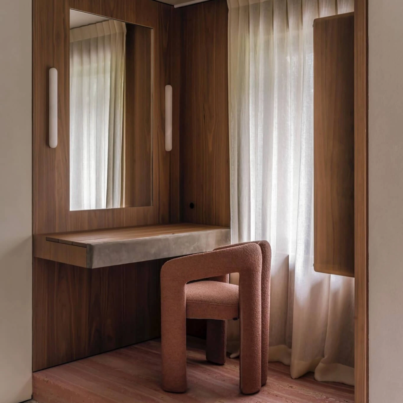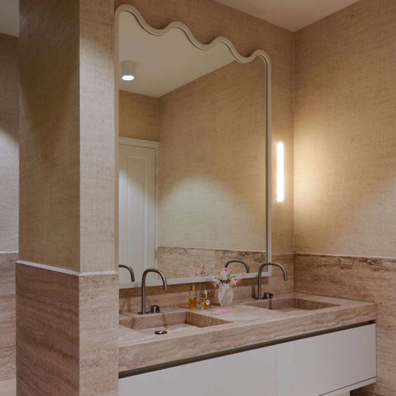 Élancée et architecturale, l’applique Tub 45 Alabaster affirme une présence lumineuse à la fois discrète et sculpturale. Conçue par le studio espagnol Contain, fondé à Majorque par Mauricio Obarrio et Juan Peralta, cette pièce illustre parfaitement la recherche d’équilibre entre matière naturelle et géométrie essentielle. Réalisée en albâtre, pierre noble appréciée pour sa translucidité, la Tub 45 diffuse une lumière douce et homogène qui enveloppe le mur d’un halo chaleureux. Chaque applique est unique : les veinures naturelles peuvent être mises en valeur pour souligner le caractère organique de la pierre, ou sélectionnées dans une version plus blanche et uniforme pour un rendu minimaliste et contemporain. Avec son format vertical de 45 cm, la Tub 45 structure l’espace avec élégance, que ce soit dans un couloir, en tête de lit ou dans un projet hôtelier haut de gamme. Plus qu’un simple luminaire, la Tub 45 Alabaster incarne la philosophie de Contain : sublimer la lumière à travers la pureté des lignes et l’authenticité des matériaux.