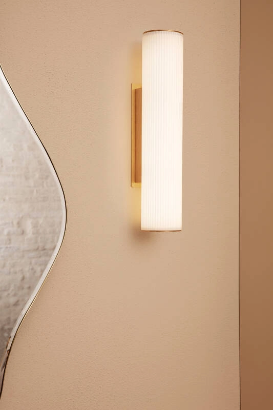 L'applique murale Ferm Living Vuelta a été conçue par Trine Andersen. Le design de Vuelta allie complexité texturale et simplicité moderne. L'applique murale Vuelta est composée d'un tube de verre opalin translucide avec une surface striée distincte et des finitions en métal brossé. Vuelta possède une source de lumière LED intégrée qui émet une lumière chaleureuse. Cette applique est livrée avec une télécommande pour contrôler l'intensité lumineuse.