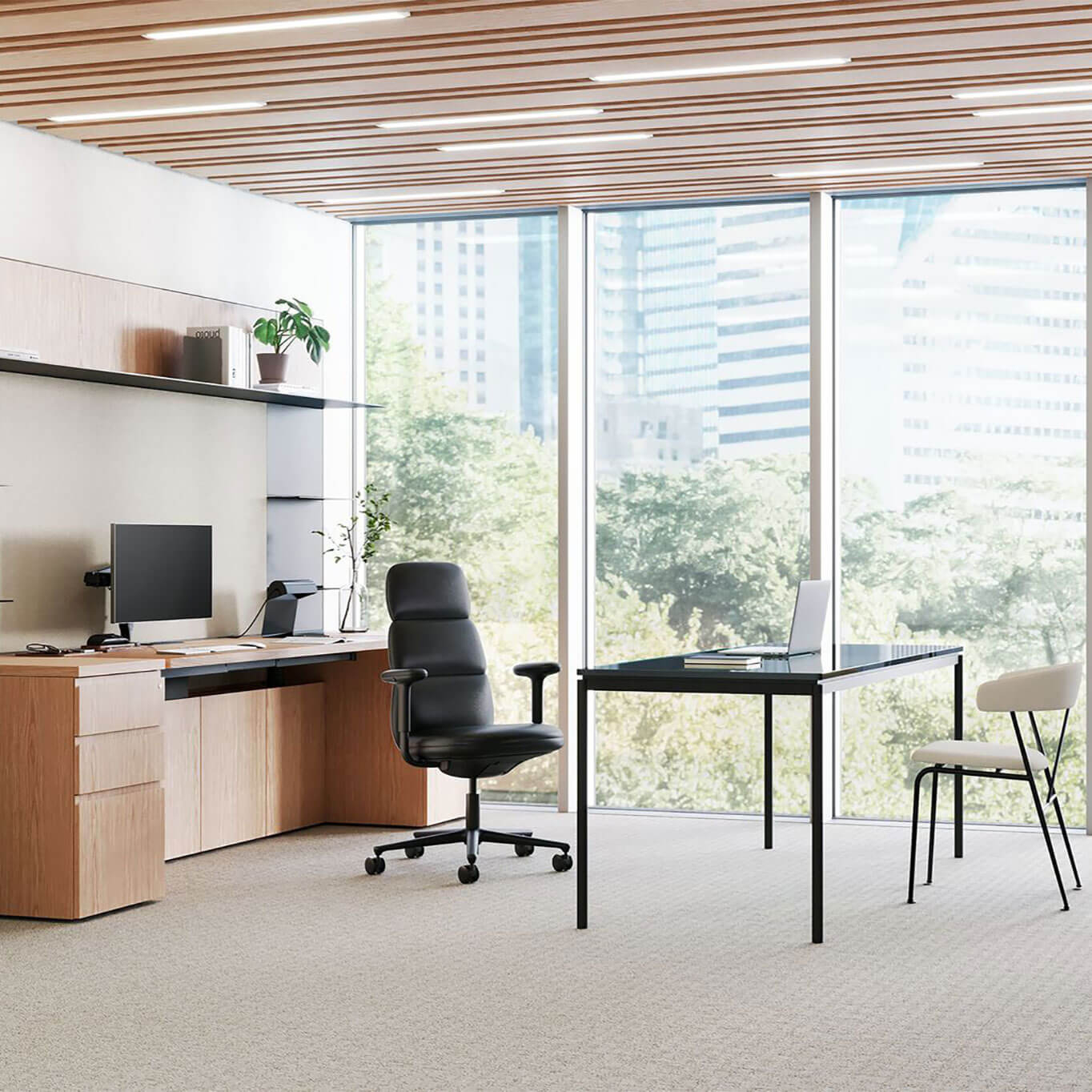 fauteuil de bureau Asari en finition Cuir Raven Noir, conçu par le designer Naoto Fukasawa et édité par