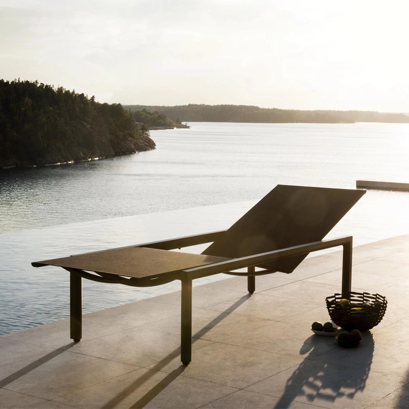 En plus d'être réglable, la chaise longue Illum de Tribu s'abaisse afin d'offrir un confort sans pareil, tandis que tous ses mécanismes – un système de pompes nouvellement mis au point – sont astucieusement camouflés. La structure en aluminium est peinte par pulvérisation et facile à maintenir. Le siège en Batyline garantit à Illum une résistance à toute épreuve et une excellente protection contre les rayons UV, les taches et les moisissures.
