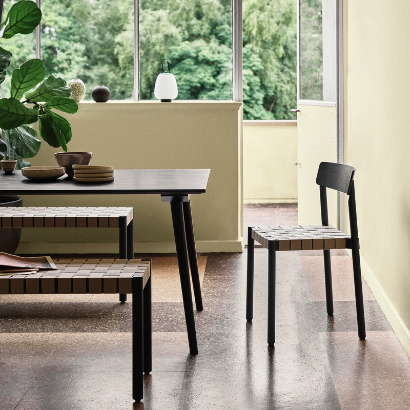 Nommés d'après le théâtre Betty Nansen de Copenhague, les bancs Betty TK4 & TK5 de Thau & Kallio se démarquent par leur assise réalisée avec des sangles en fibres de lin naturel, tissées à la main afin d’être au mieux ajustées à chaque cadre d’assise. Tout en offrant un point de vue sur le design, les sangles qui sculptent la structure du banc permettent de disposer d’une présence aérienne presque transparente. Le cadre en chêne massif est disponible en trois couleurs contemporaines : noir, bleu nuit et rouge, et se décline en deux longueurs : 105 cm et 157 cm.