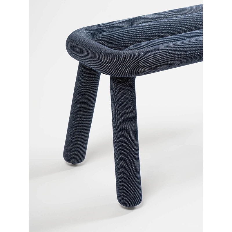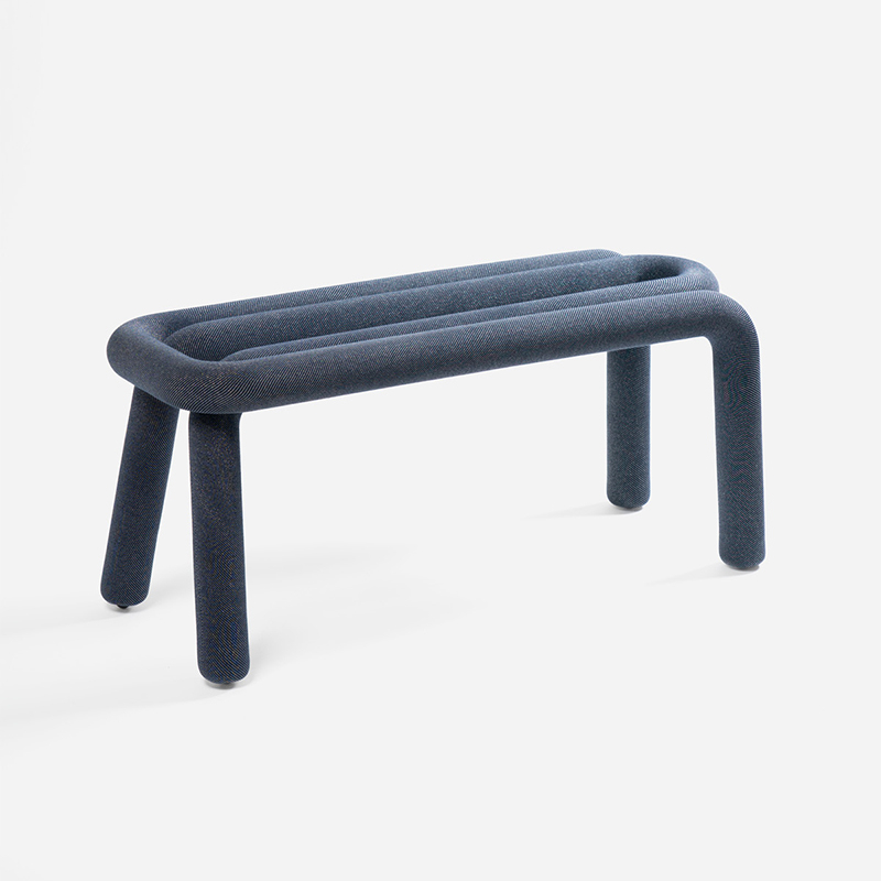 Le banc Bold est la déclinaison de la chaise du même nom, dessinée par Big-Game pour l'éditeur Moustache. Ce petit banc très graphique est composé de deux parties tubulaires en métal imbriquées l'une dans l'autre. La série Bold réactualise ainsi la tradition du siège en tube d'acier. Gonflée d'une épaisse mousse de polyuréthane, la ligne tracée par Bold joue le rôle à la fois de pieds et de siège tout en apportant le confort. Le banc de Moustache est recouvert d'un gainage de textile déhoussable qui se décline en plusieurs coloris. Il apporte une touche graphique étonnante dans une chambre d'enfant ou dans l'entrée.