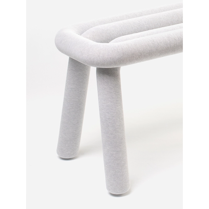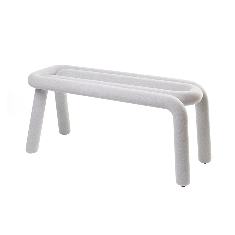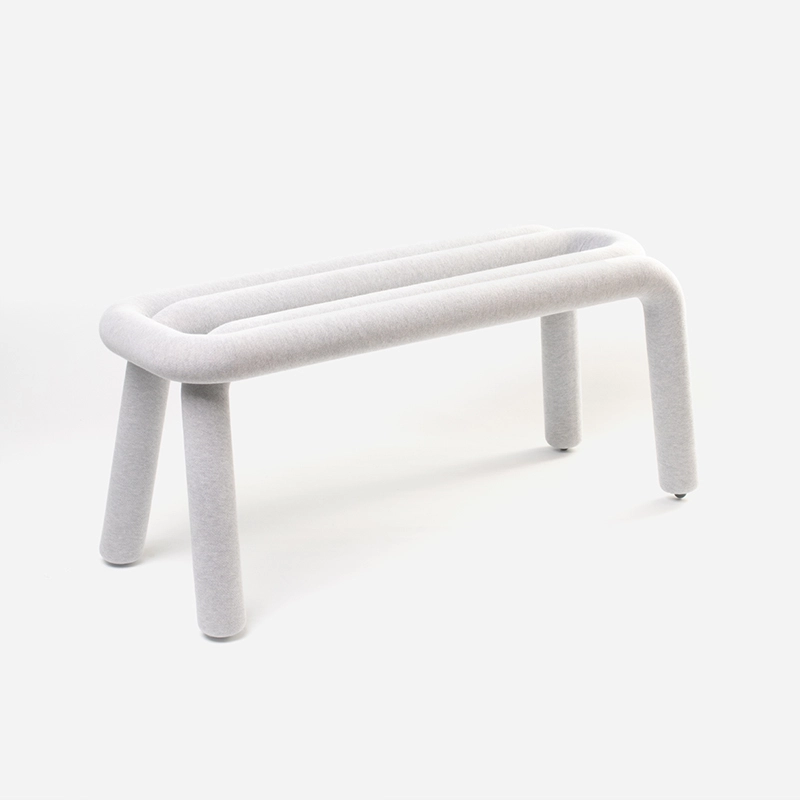 Le banc Bold est la déclinaison de la chaise du même nom, dessinée par Big-Game pour l'éditeur Moustache. Ce petit banc très graphique est composé de deux parties tubulaires en métal imbriquées l'une dans l'autre. La série Bold réactualise ainsi la tradition du siège en tube d'acier. Gonflée d'une épaisse mousse de polyuréthane, la ligne tracée par Bold joue le rôle à la fois de pieds et de siège tout en apportant le confort. Le banc de Moustache est recouvert d'un gainage de textile déhoussable qui se décline en plusieurs coloris. Il apporte une touche graphique étonnante dans une chambre d'enfant ou dans l'entrée.