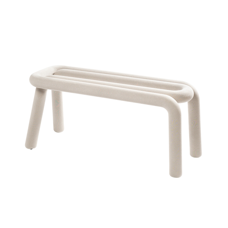 Le banc Bold est la déclinaison de la chaise du même nom, dessinée par Big-Game pour l'éditeur Moustache. Ce petit banc très graphique est composé de deux parties tubulaires en métal imbriquées l'une dans l'autre. La série Bold réactualise ainsi la tradition du siège en tube d'acier. Gonflée d'une épaisse mousse de polyuréthane, la ligne tracée par Bold joue le rôle à la fois de pieds et de siège tout en apportant le confort. Le banc de Moustache est recouvert d'un gainage de textile déhoussable qui se décline en plusieurs coloris. Il apporte une touche graphique étonnante dans une chambre d'enfant ou dans l'entrée.