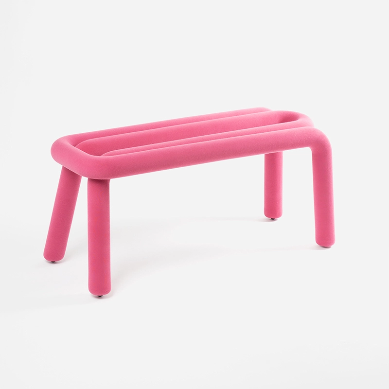 Le banc Bold est la déclinaison de la chaise du même nom, dessinée par Big-Game pour l'éditeur Moustache. Ce petit banc très graphique est composé de deux parties tubulaires en métal imbriquées l'une dans l'autre. La série Bold réactualise ainsi la tradition du siège en tube d'acier. Gonflée d'une épaisse mousse de polyuréthane, la ligne tracée par Bold joue le rôle à la fois de pieds et de siège tout en apportant le confort. Le banc de Moustache est recouvert d'un gainage de textile déhoussable qui se décline en plusieurs coloris. Il apporte une touche graphique étonnante dans une chambre d'enfant ou dans l'entrée.