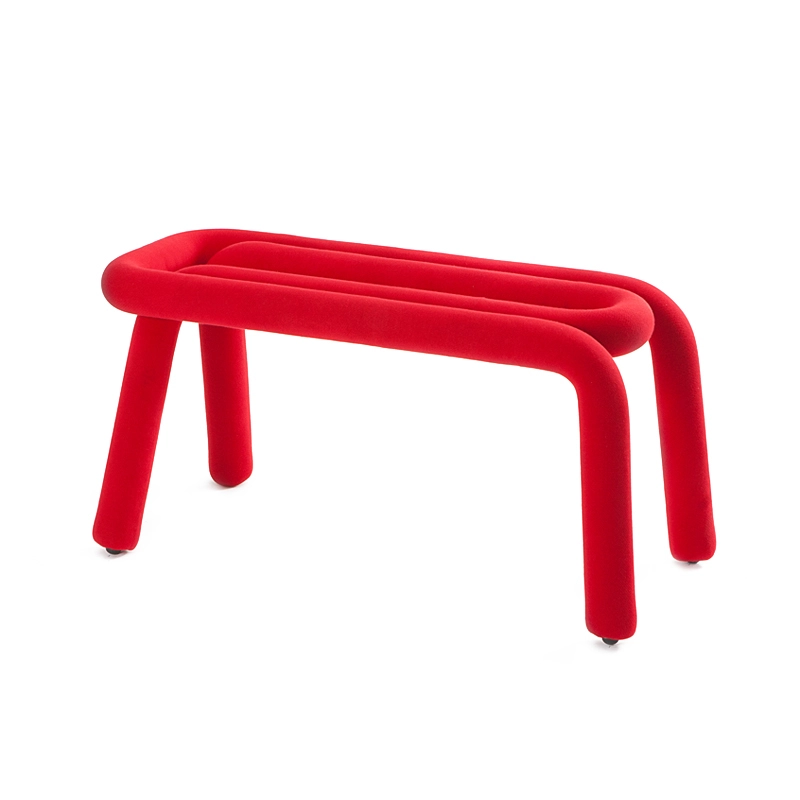 Le banc Bold est la déclinaison de la chaise du même nom, dessinée par Big-Game pour l'éditeur Moustache. Ce petit banc très graphique est composé de deux parties tubulaires en métal imbriquées l'une dans l'autre. La série Bold réactualise ainsi la tradition du siège en tube d'acier. Gonflée d'une épaisse mousse de polyuréthane, la ligne tracée par Bold joue le rôle à la fois de pieds et de siège tout en apportant le confort. Le banc de Moustache est recouvert d'un gainage de textile déhoussable qui se décline en plusieurs coloris. Il apporte une touche graphique étonnante dans une chambre d'enfant ou dans l'entrée.
