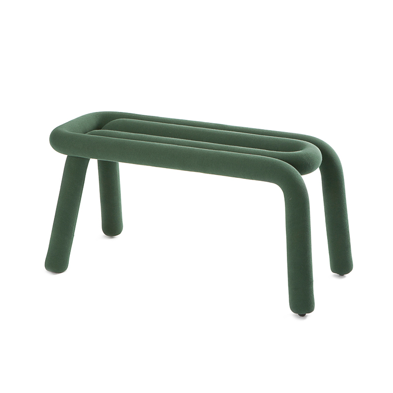 Le banc Bold est la déclinaison de la chaise du même nom, dessinée par Big-Game pour l'éditeur Moustache. Ce petit banc très graphique est composé de deux parties tubulaires en métal imbriquées l'une dans l'autre. La série Bold réactualise ainsi la tradition du siège en tube d'acier. Gonflée d'une épaisse mousse de polyuréthane, la ligne tracée par Bold joue le rôle à la fois de pieds et de siège tout en apportant le confort. Le banc de Moustache est recouvert d'un gainage de textile déhoussable qui se décline en plusieurs coloris. Il apporte une touche graphique étonnante dans une chambre d'enfant ou dans l'entrée.