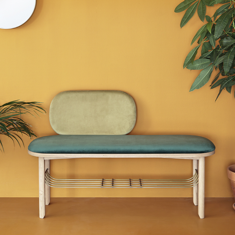 Eustache est un banc d’appoint en chêne naturel dessiné par Margaux Keller pour HARTÔ. L’assise élégante en velours cache un panier en métal effet laiton qui structure le modèle et apporte un rangement d’appoint. Eustache fait preuve de subtilité dans son design : ses pieds taillés à la façon d’une ballerine sur demi-pointes ou son dossier tout en rondeur, lui confèrent une modernité qui traverse les époques, à la façon d’un jeune dandy Moustachu de Proust ou Baudelaire... Ce banc rembourré Harto est parfait dans l'entrée.
