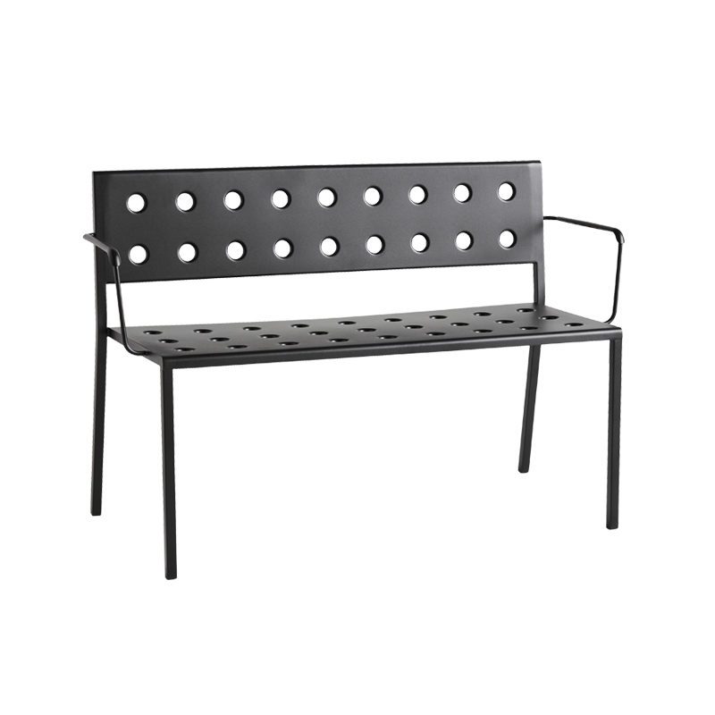 Balcony est une collection de mobilier pour extérieur conçue par les designers Ronan et Erwan Bouroullec pour la marque Hay. Le design carré est adouci par les trous et les bords arrondis, qui donnent non seulement à la collection une expression distinctive, mais aussi renforcent la construction. Le banc Balcony Dining est réalisé en acier revêtu de poudre qui reçoit en plus un traitement contre la corrosion. Cette double finition permet une résistance et une durabilité optimale. Décliné en plusieurs couleurs, le banc Balcony est parfaitement adapté aux jardins et autres espaces extérieurs.