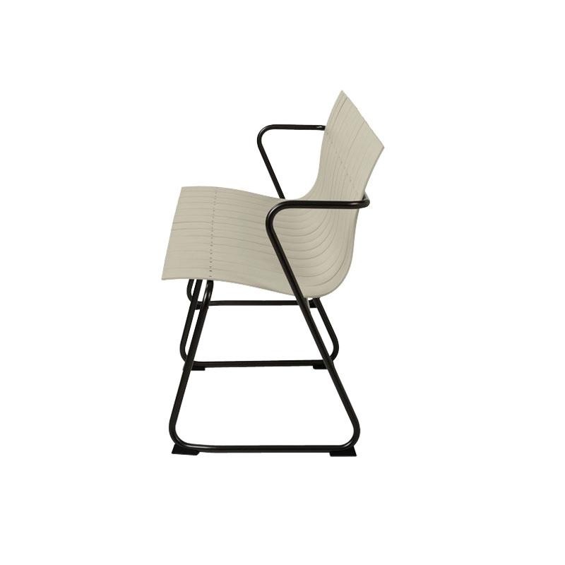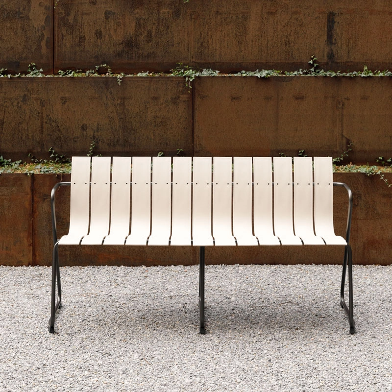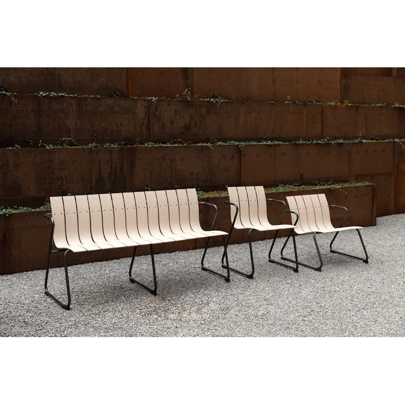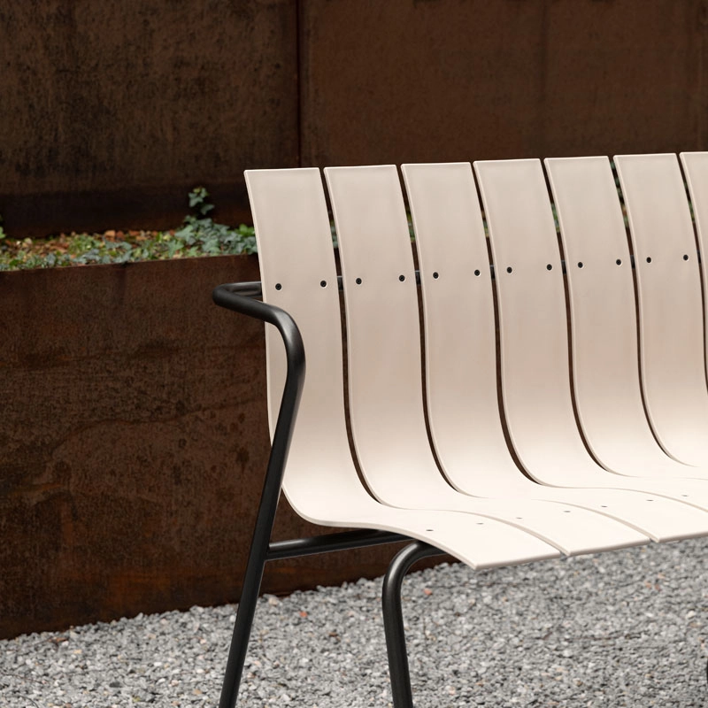Composée de lattes qui se répètent et d’une base en métal, la collection Ocean se caractérise par sa structure légère, conçue et testée pour une utilisation extérieure. Cette conception représente une pensée innovante et durable, et soutient de nombreux objectifs de développement durable des Nations Unies. La collection Ocean Mater comprend une chaise, un banc, un fauteuil lounge, une table basse et deux tables de repas, tous déclinés en deux couleurs : noir et sable. Toutes les pièces de la collection Ocean peuvent être entièrement démontées, ce qui permet à chaque composant d’être recyclé dans de nouveaux cercles de production.