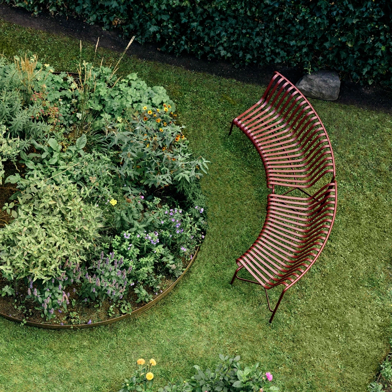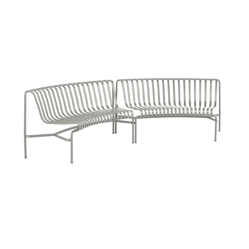 Le banc Palissade a été conçu par le duo Français Ronan et Erwan Bouroullec pour la marque Hay. La série Palissade est composée d'une large gamme de mobilier, dans laquelle toutes les pièces partagent le même principe de conception. Elle comprend des chaises, petits fauteuils, fauteuils lounge, tabourets, tables, bancs… Spécialement conçues pour un usage extérieur, ces pièces sont visuellement légères mais robustes dans leur réalisation. Inspirée par des meubles classiques, la collection trouve son originalité dans les détails. Bien que conçus en acier, ces meubles outdoor sont confortables simplement grâce à leur design. Cet ensemble Palissade Park comprend 2 bancs courbés avec dossier, reliés ensemble. Ce banc Hay est aussi élégant que résistant.