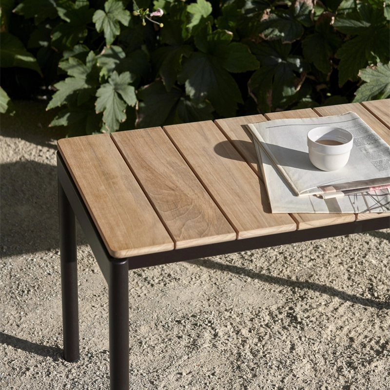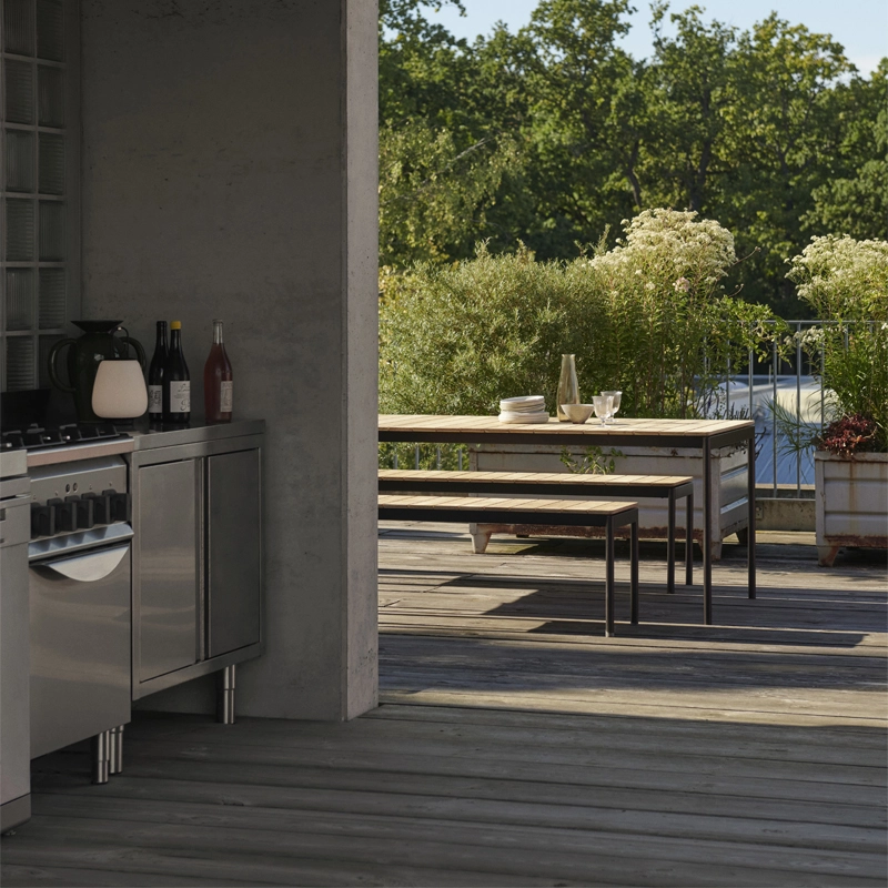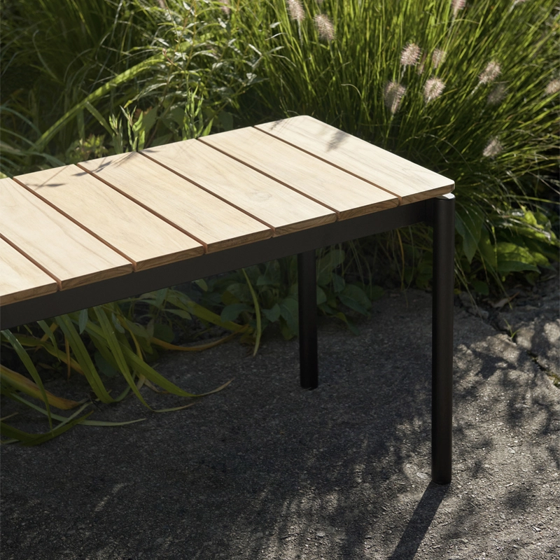 Célébration de la nature et de la matérialité, Ville de And Tradition est une collection de meubles pour l'extérieur combinant solidité et douceur. Le banc Ville AV28 a été conçu pour accompagner la table Ville AV26, mais constitue également une option de siège pour plusieurs personnes dans des maisons privées ou dans des lieux d'accueil. Le teck offre une surface chaleureuse et accueillante qui peut être huilée ou laissée non traitée selon les préférences de chacun.
