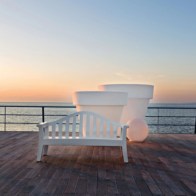 Serralunga allie créativité et recherche technologique pour devenir une référence internationale dans l’univers du mobilier outdoor. D’origine italienne, la marque se spécialise dans la transformation du plastique et collabore avec plus grands designers tels que Paolo Rizzatto et son banc Giulietta ou Ron Arad qui dessine le Top pot, à la silhouette originale et très particulière. Serralunga cherche sans cesse à innover et créer du mobilier ou des accessoires à dimensions XXL pour surprendre et embellir l’espace extérieur. Des luminaires ou pots de fleurs géants, toutes les pièces sont pensées de telle sorte qu’elles intriguent et attirent tous les regards que ce soit dans le jardin ou sur une terrasse.
