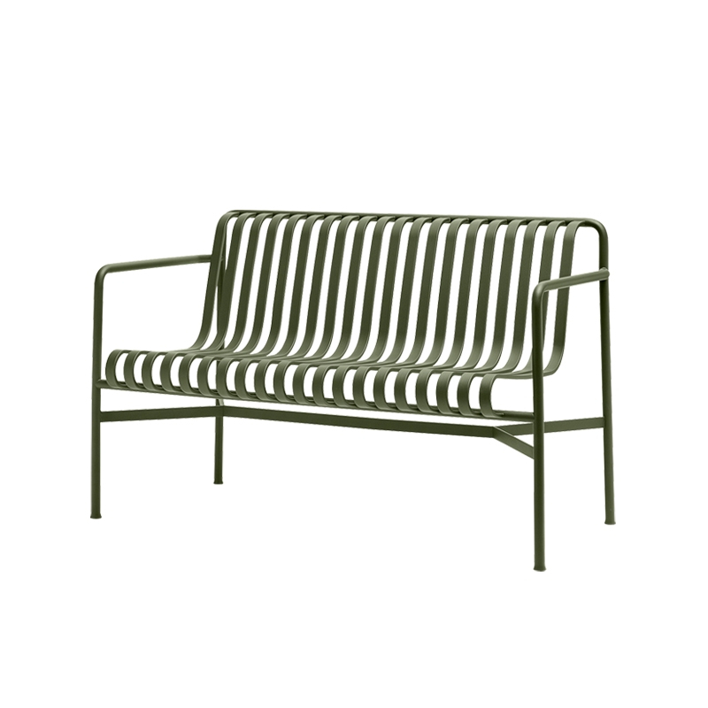 Palissade est une collection de mobilier d'extérieur dessinée par Ronan et Erwan Bouroullec pour la marque Hay. La série est composée d'une large gamme de mobilier, dans laquelle toutes les pièces partagent le même principe de conception. Palissade comprend des chaises, petits fauteuils, fauteuils lounge, tabourets, tables et bancs à l'exemple du banc avec dossier Palissade L128. Spécialement conçues pour un usage extérieur, ces pièces sont visuellement légères mais robustes dans leur réalisation. Inspirée par des meubles classiques, la collection Palissade signée Hay trouve son originalité dans les détails. Bien que conçus en acier, ces meubles outdoor sont confortables simplement grâce à leur design. Chaque pièce est disponible en vert olive, gris clair ou anthracite et s'intègre très bien dans un environnement naturel ou urbain. Avec Palissade, les frères Bouroullec ont imaginé une collection de mobilier outdoor durable qui s'associe facilement à tous les styles : un futur Classique du design !