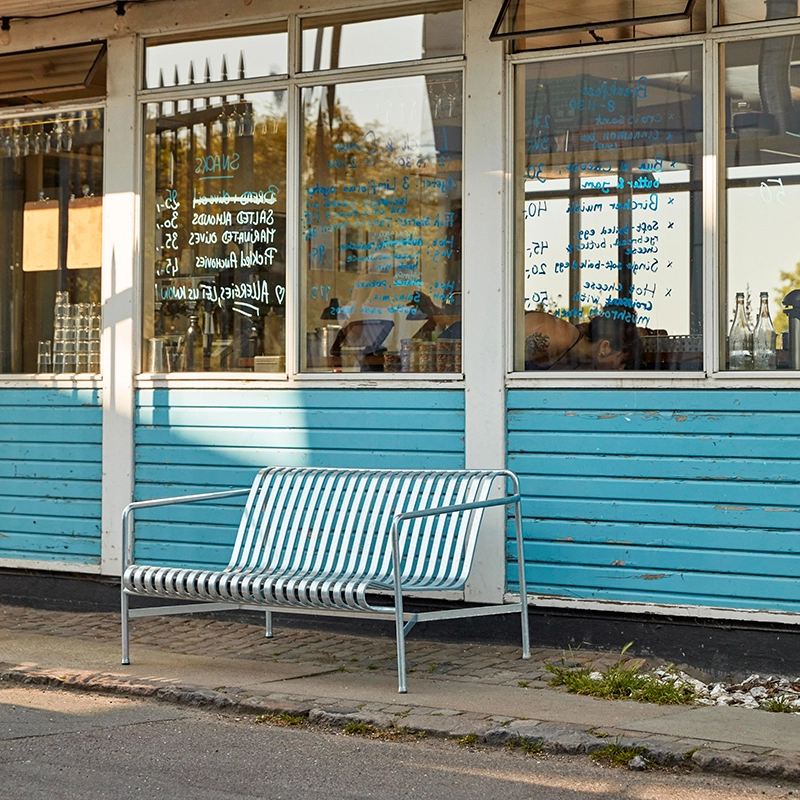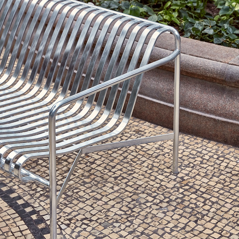 collection Palissade trouve son originalité dans les détails. Bien que conçus en acier, ces meubles outdoor sont confortables simplement grâce à leur design. Chaque pièce est disponible en vert olive, gris clair ou anthracite et s'intègre très bien dans un environnement naturel ou urbain. Avec